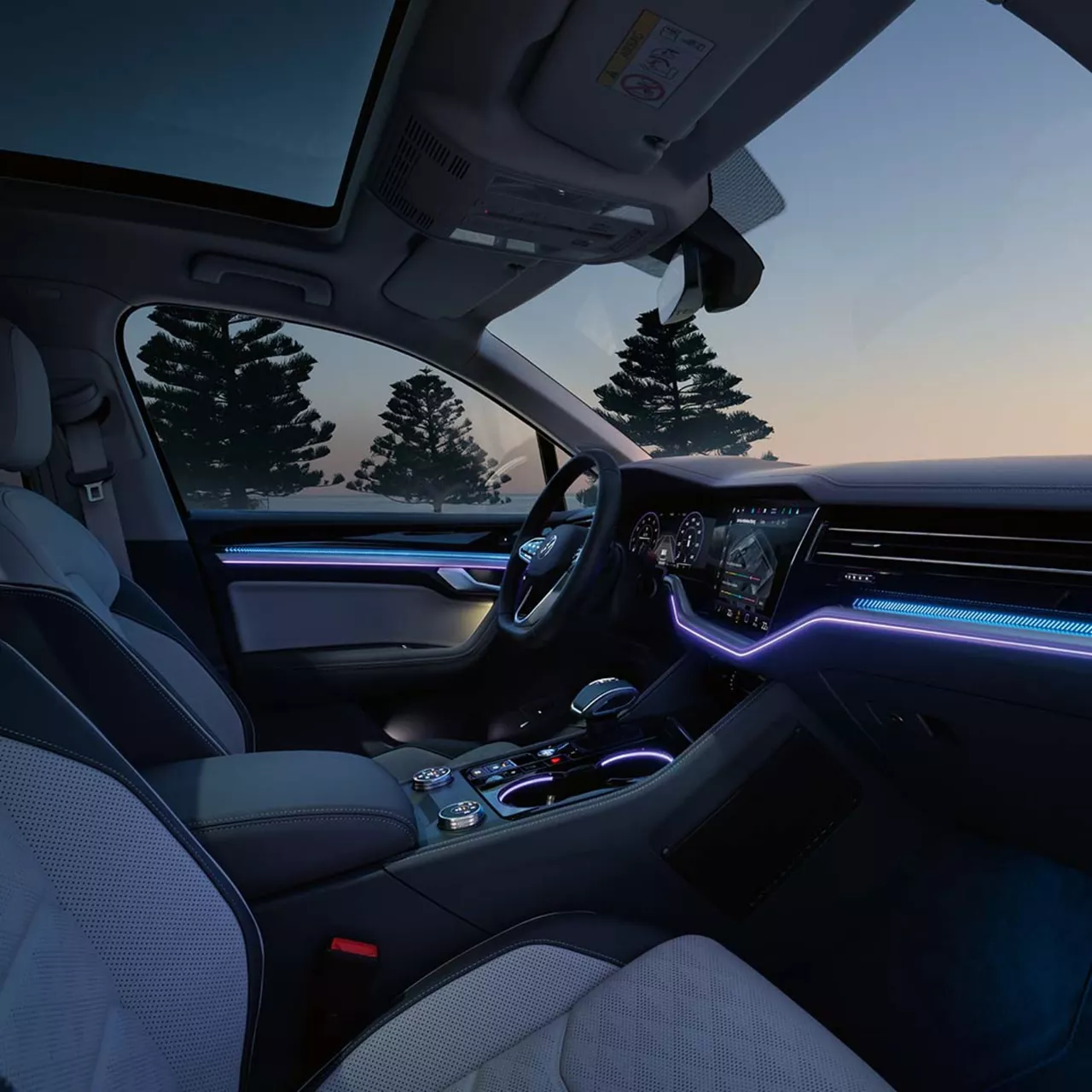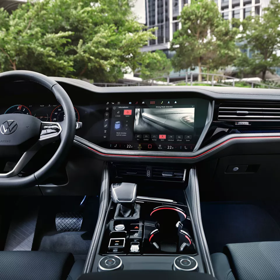 Yeni Touareg'in dijital iç mekanı sınırsız konfor ve eğlenceyi bir arada sunar. Tüm bilgilendirmeleri sürücünün görüş alanına yansıtan ve yolculuğunuzu daha keyifli hale getiren 12.3” Dijital Gösterge Paneli "Digital Cockpit Pro" ve 15” "Discover Pro Max" Navigasyon Sistemini bir arada sunar.